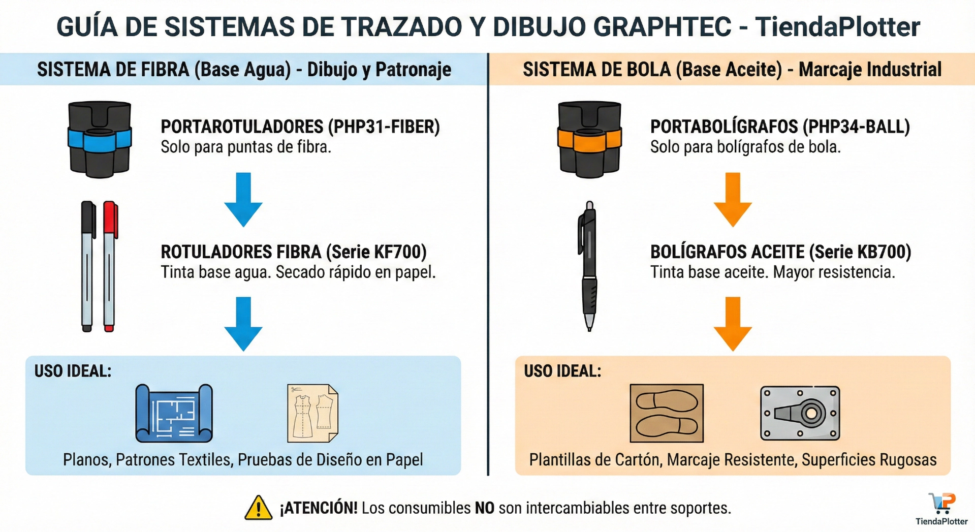 ⚠️ Nota Importante de TiendaPlotter: Estos rotuladores NO pueden montarse directamente en el plotter. Es imprescindible disponer del Portarotuladores de Fibra PHP31-FIBER para sujetarlos correctamente en el cabezal.